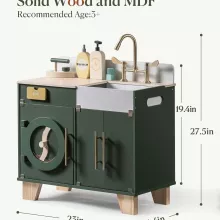 Ignite your child’s creativity and love for pretend play with the charming Vintage Green Wooden Toy Washer and Dryer Kitchen Playset. This beautifully designed set combines a classic look with modern play features, making it a delightful addition to any playroom. Whether kids are “washing” clothes, organizing their pretend laundry supplies, or mimicking household tasks, this playset offers endless opportunities for imaginative fun and skill development.
