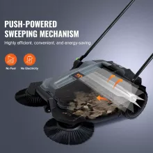 - Human-Powered Efficiency: No need for electricity or fuel—this manual sweeper relies on a simple human-powered mechanism. With its 25.6-inch sweeping width, you can clean large areas faster and more efficiently than ever before.