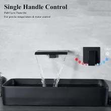 Bring sophistication and spa-level luxury into your bathroom with this minimalist matte black waterfall faucet. Crafted for style lovers and designed for daily comfort, it’s time to upgrade your routine. Add this modern centerpiece to your bathroom today.