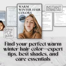 Want to enhance your natural beauty with the perfect hair color this winter? The Warm Winter Hair Colors guide is your all-in-one digital download to uncovering the hair shades that truly flatter your warm winter palette. Whether you’re considering a bold new look or fine-tuning your current style, this easy-to-follow guide will help you discover the science behind color theory, practical color tips, and real-world inspiration—all tailored for warm winter tones.