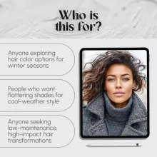 This downloadable eBook is more than just pretty pictures—it’s your personal roadmap to choosing, maintaining, and styling the perfect warm winter hair colors that elevate your appearance and confidence.