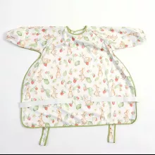 Crafted from lightweight, breathable polyester, this bib is soft on delicate skin and easy to move around in. The fun and playful printed patterns add a touch of charm, making it a favorite for little ones and parents alike. The back snap closure ensures a secure fit, while the full-sleeve design with elastic cuffs keeps arms protected. Best of all, it’s waterproof and washable, so cleanup is as simple as a quick wipe or toss in the wash.