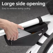 Perfect for mountain bikers, road cyclists, and everyday commuters, this under-frame bag fits snugly on a wide range of bikes and is ideal for carrying tools, snacks, keys, phones, or small repair kits. Thanks to its oversized opening and thoughtfully designed compartments, you can access your items quickly—even in motion. The bag is scratch-resistant, wear-resistant, and built to handle rugged rides, rainy commutes, and everything in between.