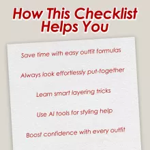 Unlike generic style guides, this checklist blends timeless styling rules with modern AI outfit planning. It doesn’t just tell you what to wear—it helps you build confidence in your wardrobe choices while embracing the convenience of digital tools.