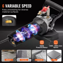Featuring 6 variable speed settings from 1000 to 4000 RPM, you can adjust the intensity based on your task and surface type. From coarse material removal to ultra-fine polishing, the included 7-piece pad kit (grits 50 to 3000) covers it all. Built for safety and comfort, it offers advanced features like a GFCI safety switch, anti-rust water sprayer, and ergonomic D-shaped handle for extended use without fatigue.