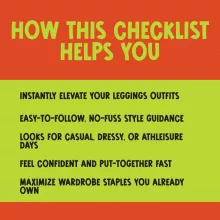 Unlike other digital style guides that overwhelm you with long articles or generic advice, this checklist is highly visual, to-the-point, and focused entirely on what to wear with leggings. You’ll get curated, practical tips that you can apply immediately using what’s already in your closet.
