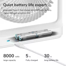 Powered by an impressive 8000mAh lithium battery, this fan offers up to 30 hours of cooling on a single charge. Say goodbye to bulky cords and outlets — just charge it up and enjoy uninterrupted airflow wherever you go. With three adjustable wind modes — Natural Wind, Sleep Wind, and Prevailing Wind — you can customize your cooling experience based on the moment. Plus, its sleek, compact design blends effortlessly into any room, making it an ideal companion for both function and style.