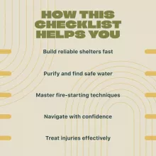 Don’t risk heading into the wilderness unprepared. The Wilderness Survival Essentials Checklist is more than just a list—it’s a reliable companion that gives you the knowledge and tools to thrive in the great outdoors. Whether you’re a beginner or a seasoned adventurer, this digital guide ensures you’re covered from every angle. Download it today and take your first step toward safer, smarter, and more enjoyable adventures.