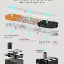 - Advanced Filtration: Multi-layer filter removes impurities and bacteria from tap water.