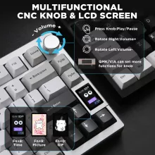 Crafted from solid CNC-machined aluminum, the AL80 offers an unmistakably premium feel. The full aluminum case is anodized for durability and aesthetics, while the built-in LCD display adds a modern, interactive twist to your setup. Whether you’re checking the time, battery life, or even displaying custom GIFs, the screen makes your keyboard as expressive as it is powerful.