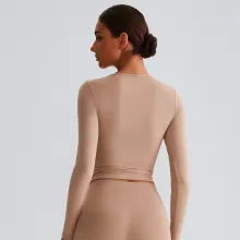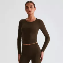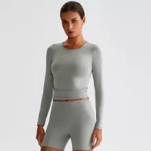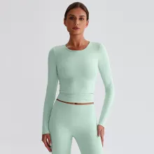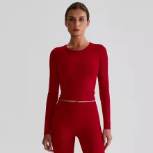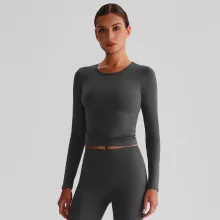 This yoga crop top features a flattering round neckline and a cropped silhouette that complements your natural shape. With a slim fit and full-length sleeves, it’s ideal for layering or wearing solo. The breathable broadcloth knit fabric ensures you stay cool, dry, and focused, even through the most intense sessions.