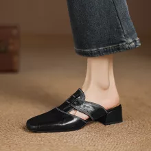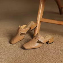 Featuring genuine sheepskin leather both inside and out, these mules deliver a soft, breathable feel against your skin. The high-quality materials are carefully stitched for durability, while the slip-on design ensures you’re ready to go in seconds. The insole also boasts premium sheepskin, adding a plush, cushioned layer underfoot for lasting comfort throughout the day. A standout square-shaped heel—measuring approximately 1.6 inches (4 cm)—offers subtle elevation without sacrificing support.