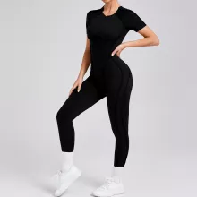 With its short sleeves and sleek, form-fitting design, this jumpsuit is perfect for yoga, pilates, gym workouts, cycling, dance, or even casual athleisure wear. The push-up fit sculpts your shape, while the soft, stretchy fabric allows unrestricted motion, making it your go-to outfit for both training and lounging.