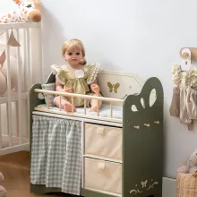 Whether it’s for bedtime pretend play, daytime playdates, or a centerpiece in a doll collection, this doll bed makes every moment magical. With soft bedding and a built-in storage area, kids can tuck their dolls in cozy comfort and keep small accessories neatly organized.