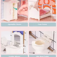 - Interactive Details: Enjoy realistic features like working cabinet doors, drawers, and a mirror to bring the dollhouse to life.
