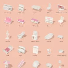 - 28 Lifelike Furniture Pieces: Includes a sofa, lamp, kitchen table, chairs, bathtub, recliner, toilet, bed, and more for a fully furnished experience.