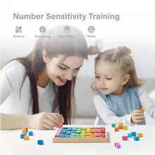 - Double-Sided Learning: Each of the 100 wooden blocks features a multiplication problem on one side and the solution on the reverse, promoting independent problem-solving.