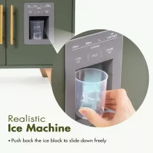 - Interactive Learning: The play kitchen encourages hands-on learning. Touch-sensitive controls activate cooking sounds, and the temperature dial teaches children about heat levels. This playful learning experience helps children develop cognitive and problem-solving skills as they explore the art of cooking.