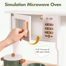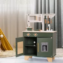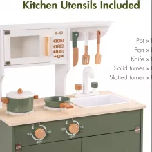 - Safe and Durable: Crafted from high-quality solid wood, this kitchen set is built to last. The polished edges ensure that it’s safe for children, while the sturdy construction guarantees long-lasting durability. It’s designed to handle hours of fun while staying safe for little hands.