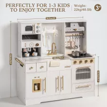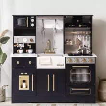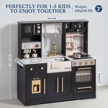 Perfect for birthday presents, holidays, or just as a surprise for your little one, this play kitchen is sure to delight. The interactive design of this set helps children develop their fine motor skills, enhance their social play, and boost their creativity. With multiple functions like a wash basin, microwave, and ice maker, your child will enjoy endless scenarios and imaginative cooking activities. The modern black-and-white design also adds a touch of style to any room, making it both a functional toy and an attractive piece of decor.