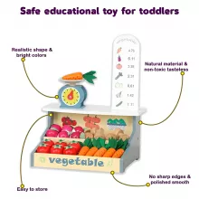 Looking for a toy that will entertain and educate your little one? This Wooden Vegetable Market Playset is the perfect choice! Not only does it provide hours of fun through imaginative role-playing, but it also helps develop important skills such as counting, sorting, and communication. As children engage in pretend market activities, they improve their fine motor skills, practice social interactions, and explore the world of commerce in a fun, safe environment.